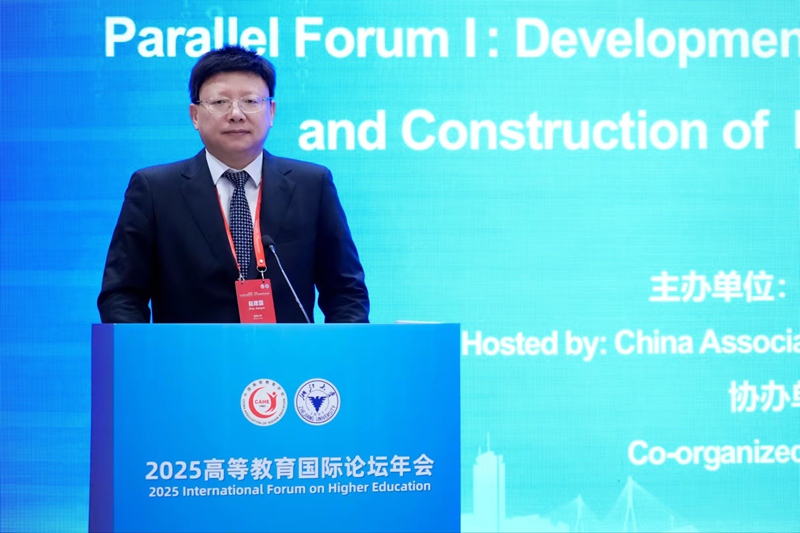| President Zhao makes a professional report at the 2025 International Forum on Higher Education. |