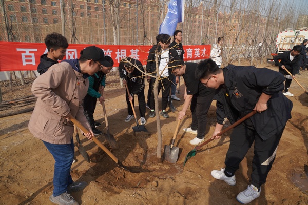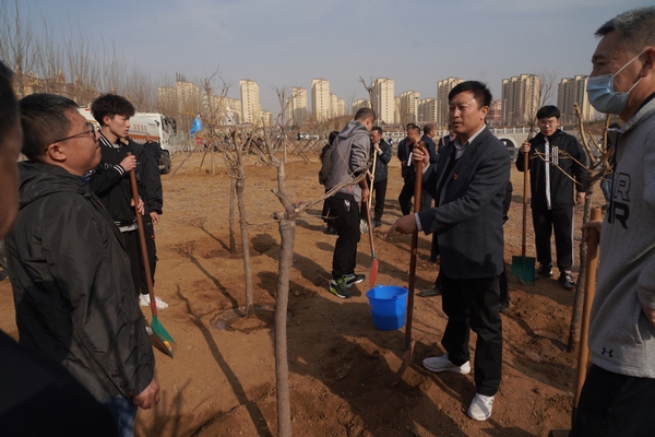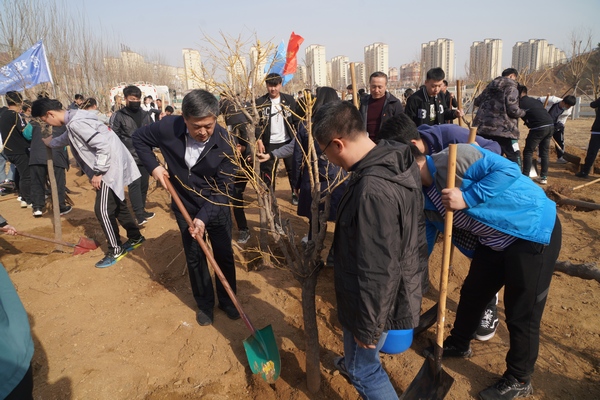 党委书记刘洋与同学们共同植树